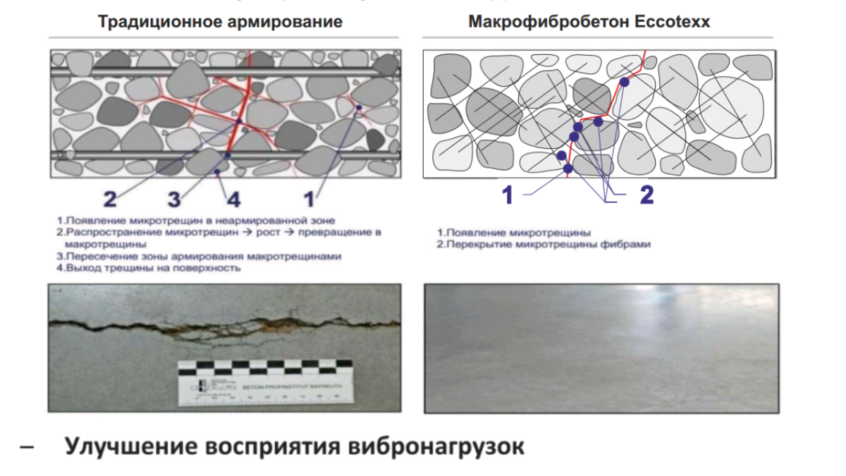 | Решаемые задачи | Образование трещин при пластической усадке | Растрескивание при усадке и термическое растрескивание | Растрескивание при усадке и термическое растрескивание | Улучшение прочностных характеристик |